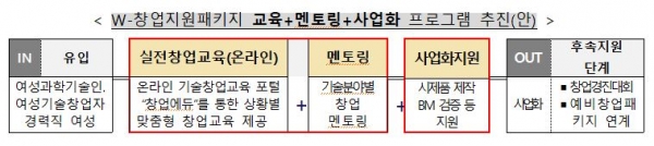 여성과학기술인 등이 기술창업으로 성공할 수 있도록 여성특화 창업프로그램(W-창업지원패키지, 200명)을 운용한다.