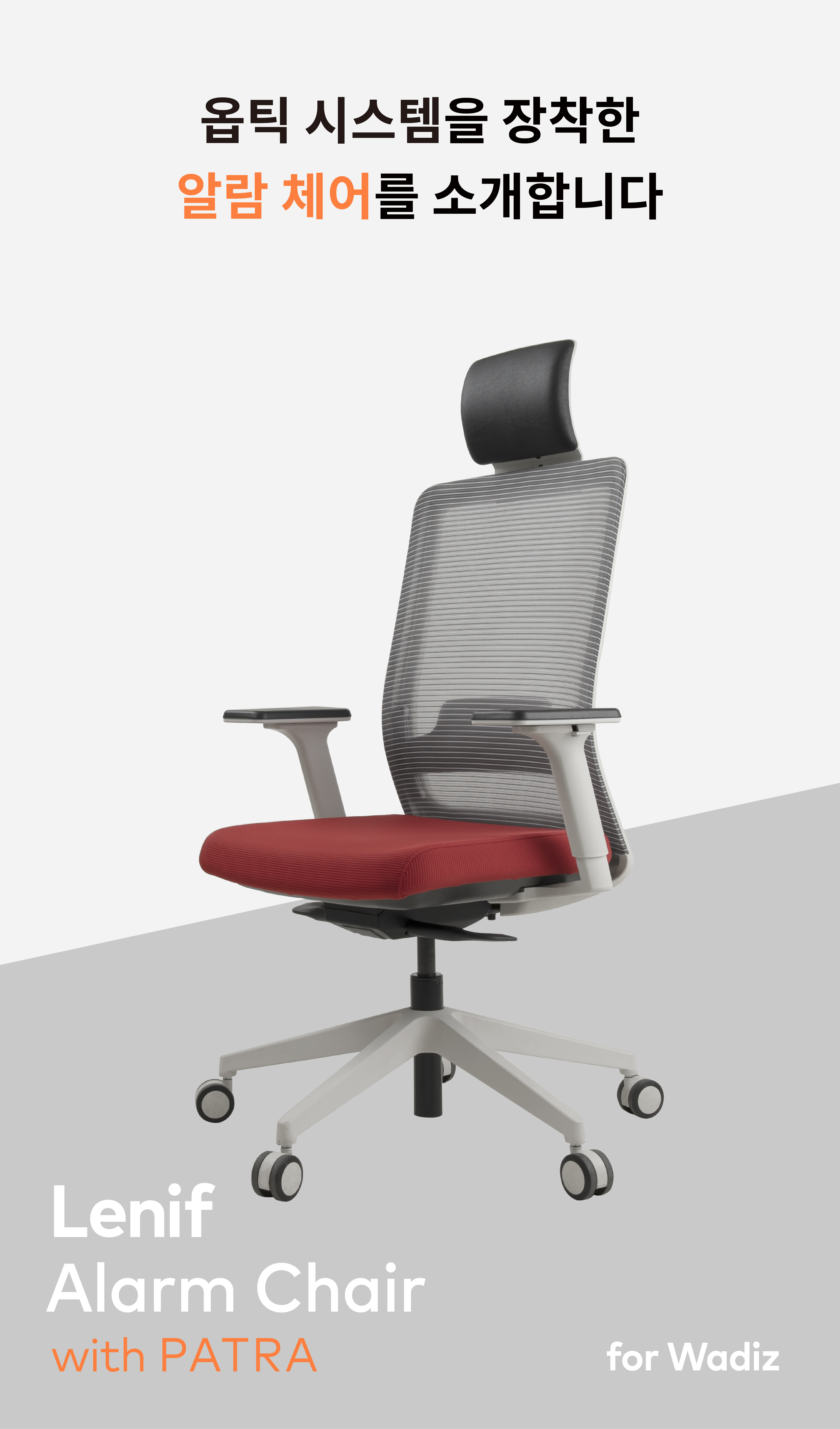 레니프와 파트라가 협력한 첫 제품인 알람 체어는 와디즈를 통해 2월 중순에 론칭한다. 파트라의 기술력으로 오래도록 인정받은 마린 의자에 센서를 탑재하여 안 좋은 자세로 앉아있을 때에만 알림을 준다. 알림이 울리는 타이밍에 가장 신경을 써서 제작하였다고.