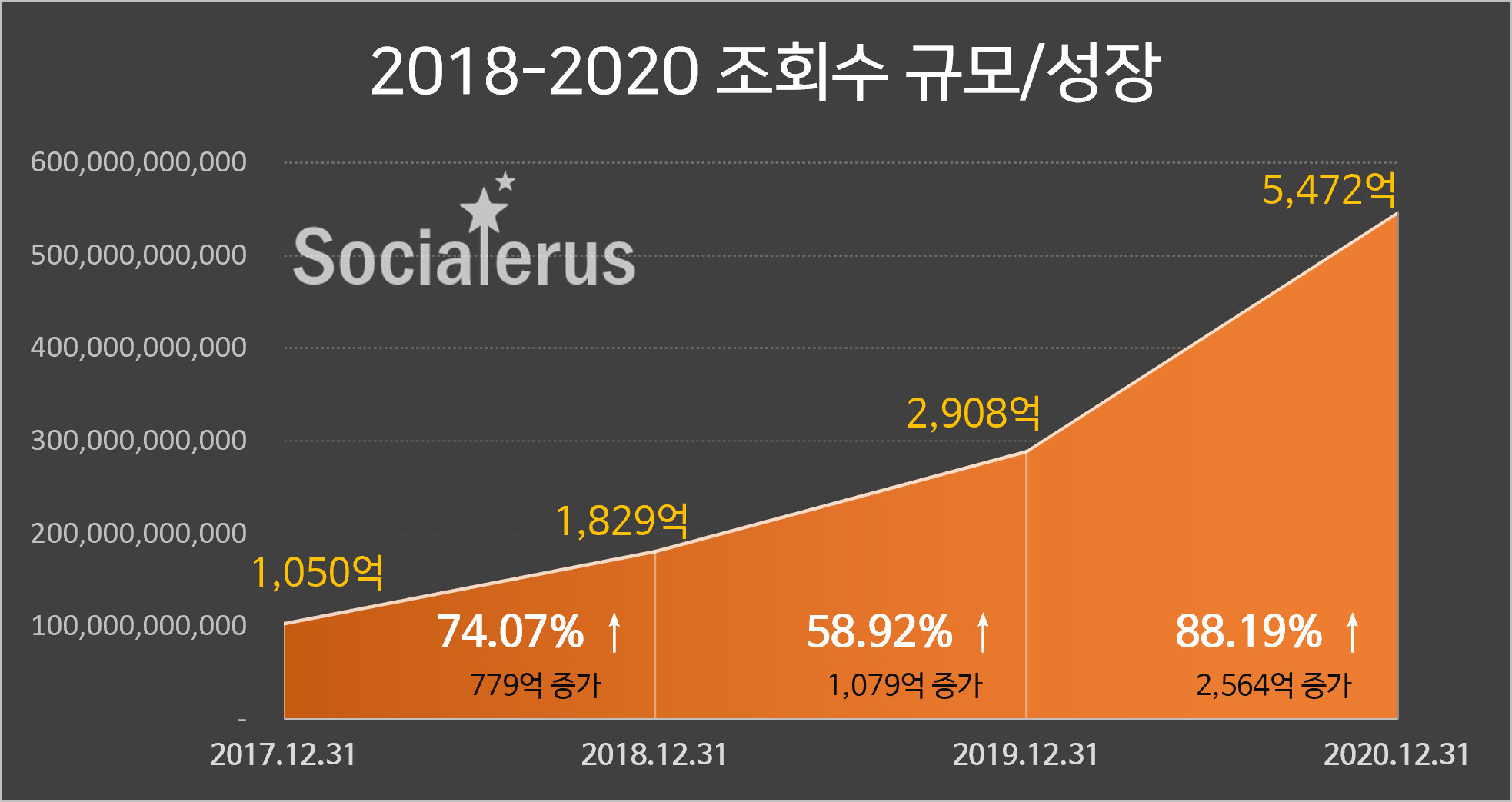 소셜러스 운영사인 ㈜필로비즈 양효욱 대표는 보고서에서 “2020년 구독자는 67% 성장하여 누적 구독자 14억 9천만을 달성하고, 조회수는 무려 88% 성장하여 누적 조회수 5,472억을 돌파해 2017년 데이터 분석을 시작한 이래 가장 큰 규모로 성장했다”며 “코로나로 한국이 멈춘 사이, 유튜브는 하늘을 날았다”고 밝혔다.