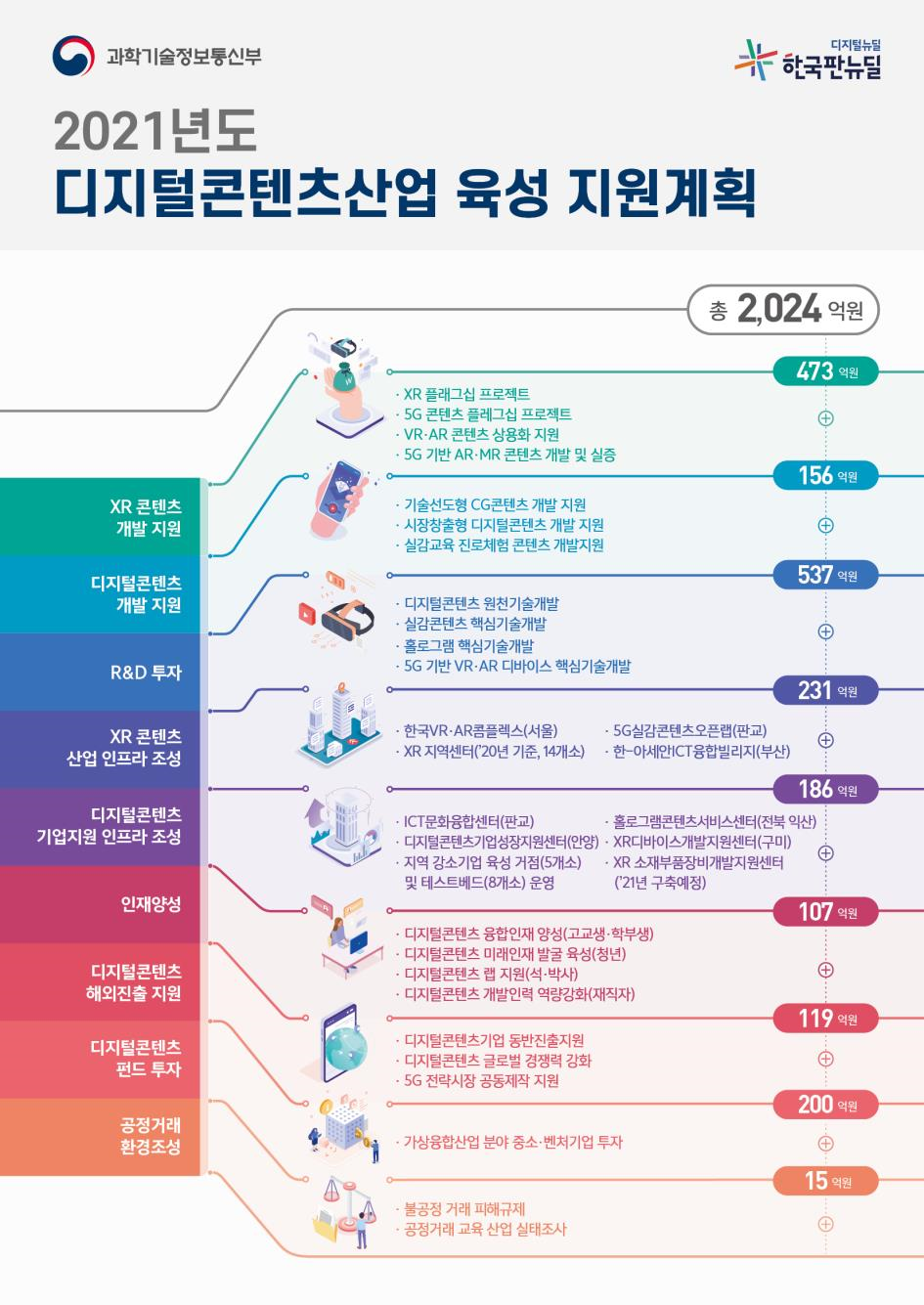 과기정통부는 ‘2021년도 디지털콘텐츠산업 육성 지원계획’ 마련하고, 관련 내용을 4일 통합공고 한다고 밝혔다.