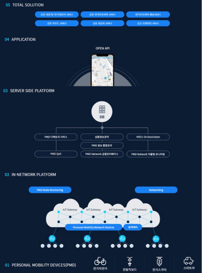 비엔씨테크의 PMSP는 언제 어디서든지 원하는 목적지까지 안전하고, 편리하게 “이동의 자유”를 보장하는 서비스이다. 퍼스널 모빌리티, 즉 개인형 이동장비 응용기술을 보유하고 있다. 비엔씨테크의 사업모델은 월 15,000원으로 이용할 수 있는 인공지능형 관리시스템이다. 비엔씨테크의 유효시장은 50만 명 규모이며, 사용가능시장은 250만 명 규모이다.