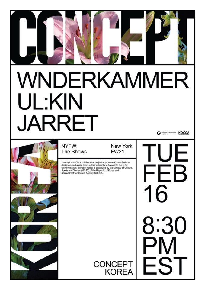 온라인 개최로 전 세계 누구나 시청할 수 있는 이번 컨셉코리아 영상은 오는 17일(수) 오전 10시 30분 뉴욕패션위크 공식 홈페이지(www.nyfw.com)를 통해 발표되며, 18일(목)부터는 콘진원 공식 유튜브(www.youtube.com/user/