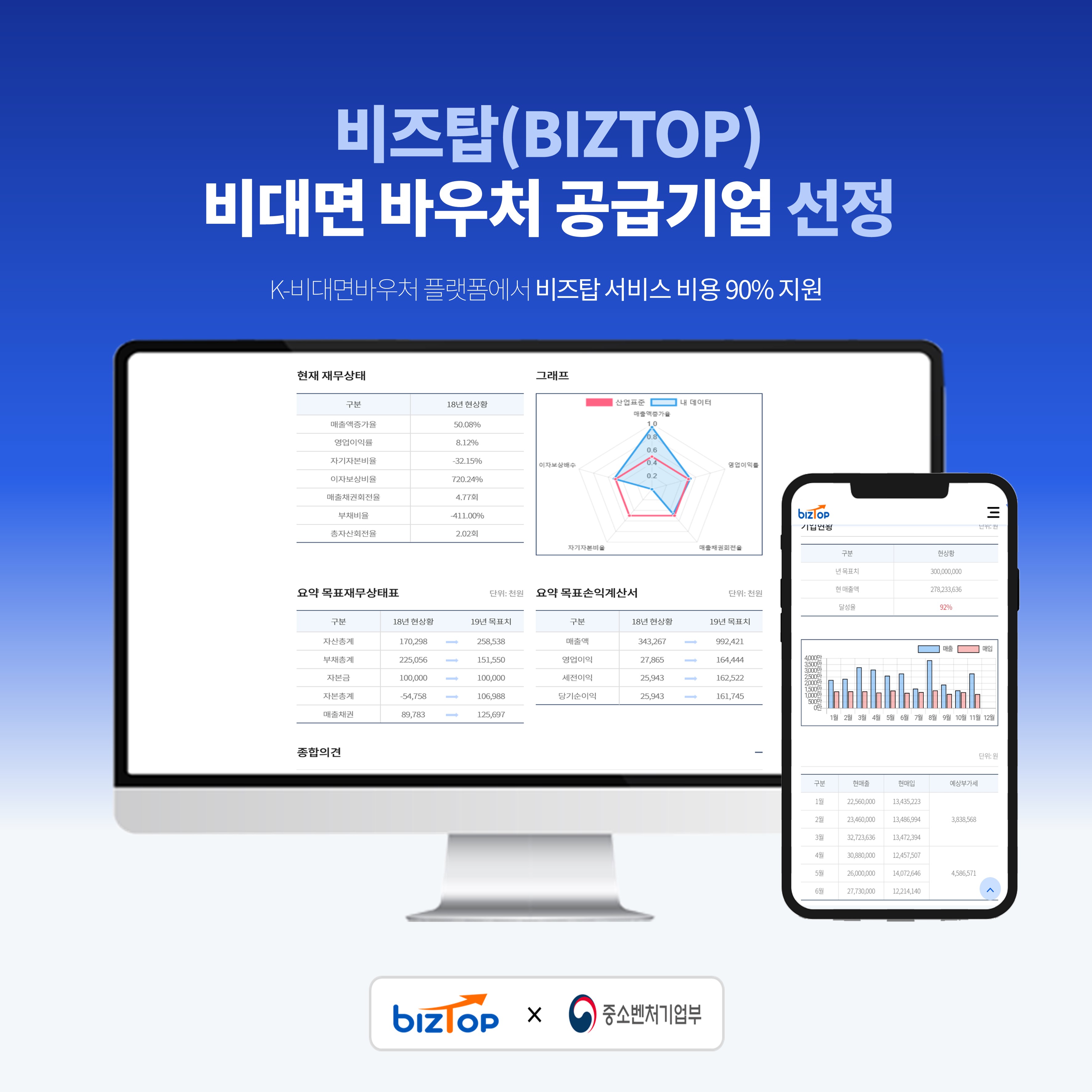 이번 사업을 통해 비즈부스터는 재무제표 관리 솔루션 ‘비즈탑(BIZTOP)’을 공급한다.