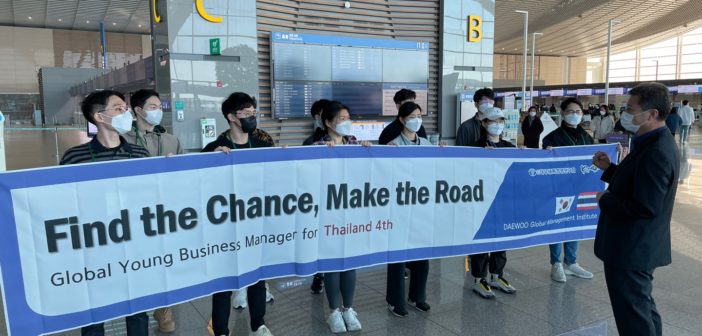 사단법인 대우세계경영연구회(회장 장병주)는 글로벌 청년사업가(Global Young Business Manager: GYBM) 양성과정 태국 4기 연수생 11명이 국내 연수를 마치고 현지 연수를 시작한다고 21일 밝혔다. 태국4기 연수생들은 방콕 탐마삿대학교 (Thammasat Univ.)에서 4개월 간 현지언어연수를 통해 직무역량을 강화하게 된다. 베트남으로 출국한 베트남 10기는 하노이보건대학교에서 현지연수중이며, 베트남어와 직무교육, 비즈니스모델 개발등 다양한 청년사업가영성과정을 연수중이며, 국내에서는 미얀마 7기와 인도네시아6기가 경기도 용인 고등기술연구원 글로벌인재양성센터에서 국내연수중이다. 글로벌 청년사업가 양성과정은 대우세계경영연구회(www.daewoosky.com)가 청년들의 해외 진출을 돕기 위해 설립한 프로그램으로, 베트남, 인도네시아, 태국, 미얀마 등 동남아시아에서 경영 실무, 현지어, 영어를 중심으로 교육하고 있다.