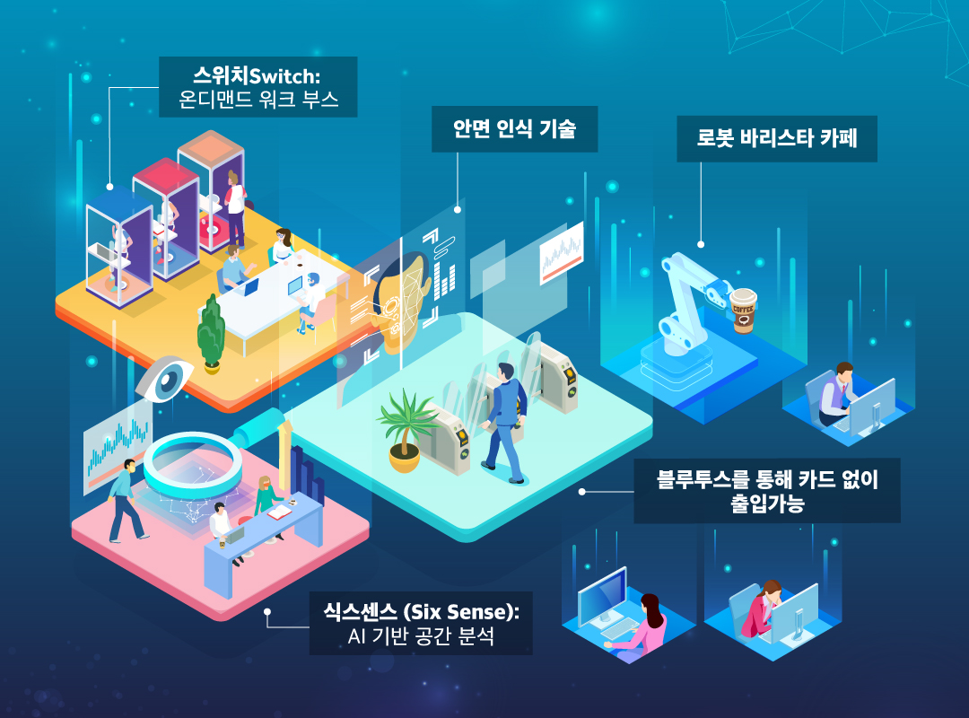 이번 신규 플랫폼은 이용자가 개인의 니즈에 맞게 업무 장소와 방법을 결정할 수 있도록 하는데 중점을 둔 ‘스위치(Switch)’와 ‘식스센스(SixSense)’다. 두 가지 서비스는 단독 또는 팀 공동 업무의 원활한 수행을 위해 거점 사무실, 유연한 업무 공간, 원격 업무와 같은 다양한 업무 옵션을 홈 오피스 및 기타 업무 공간 솔루션과 결합했다.