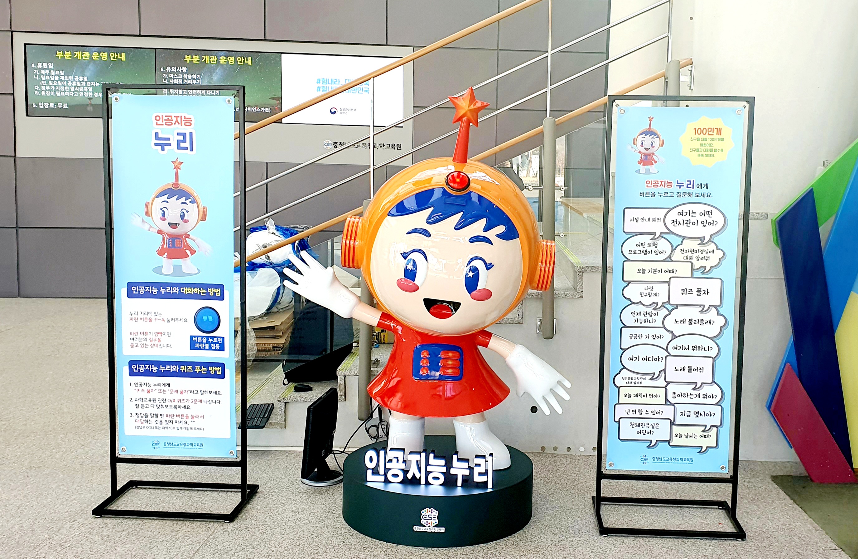 충청남도 교육청 과학교육원의 마스코트인 누리가 아이들의 일상대화 100만개를 학습한 인공지능으로 거듭나, 시설안내는 물론, 아이들에게 동요도 불러주고, 과학교육원에서 진행하는 전시 및 체험에 관한 학습 내용과 평범한 일상 대화 까지 나룰 수도 있다.