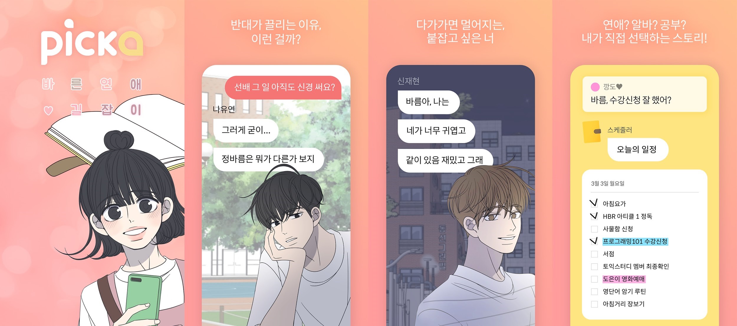 피카 바른연애 길잡이는 구글 플레이스토어와 애플 앱스토어에서 받을 수 있다.