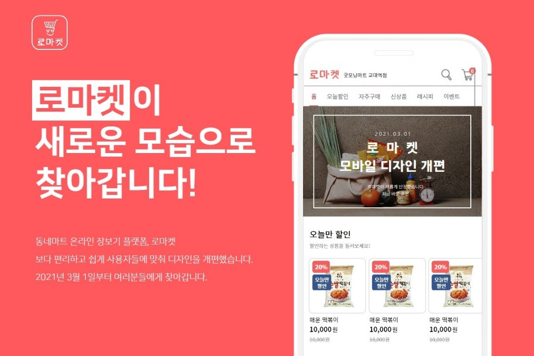 동네 마트 장보기 플랫폼 로마켓이 사용자들의 주문 편의성을 높이기 위해 3월 8일부터 모바일 앱을 새롭게 개편했다고 밝혔다.