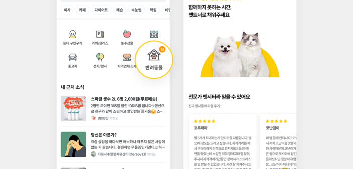 반려동물 케어 서비스 펫트너 (대표 최가림, 수의사)가 지역 생활 커뮤니티 서비스 당근마켓 (공동대표 김용현, 김재현)에 입점한다고 17일 밝혔다. 당근마켓의 사용자들은 이제 당근마켓 앱 내에서 펫트너의 반려동물 돌봄 서비스를 손쉽게 신청할 수 있다. 당근마켓은 중고 물품 거래 플랫폼에서, 최근 지역기반의 무료 나눔, 생활 정보 공유 등이 이뤄지는 커뮤니티 플랫폼으로 확장하고 있다. 특히, 반려동물 보호자들에게는 반려동물의 일상부터 지역 병원, 간식, 건강 등의 정보를 공유하고, 반려동물을 돌봐주는 펫시터를 구하는 목적으로도 활발하게 활용되고 있다. 당근마켓과 펫트너는 이러한 반려동물 보호자 고객들을 위해서, 당근마켓 앱 내에서 고객들이 펫트너의 돌봄 서비스를 간편하게 신청할 수 있도록 했다. 당근마켓 앱 하단의 ‘내 근처 > 반려동물’ 메뉴에서 펫트너의 펫시터 서비스를 신청할 수 있다. 지난 12일부터 역삼동에서 서비스가 시작되어 역삼동에서만 하루 천 명 이상의 고객이 유입되고 있으며, 이번 달 내로 강남구 및 서울 전역으로 서비스가 확장될 예정이다. 당근마켓 앱 내에 외부 O2O서비스가 연동되는 것은 비대면 세탁 서비스, ‘세탁특공대’ 와 ‘미소’의 이사 서비스에 이어, 펫트너가 세 번째다. 펫트너는 수의사인 최가림 대표가 2017년 창업한 스타트업으로, 수의사, 수의대생, 수의테크니션, 미용사를 포함한 업계 최고의 분야별 반려동물 전문가를 연결하여 돌봄, 교육, 미용 등 서비스를 제공하며 반려 가족의 건강한 삶을 돕고 있다. 펫트너 최가림 대표는 “이번 협업으로 당근마켓의 반려인들은 같은 지역에 거주하는 믿을 수 있는 펫시터에게 반려동물을 쉽게 맡길 수 있게 되었다”라며, “소중한 가족인 반려동물을 두고 맘 편히 외출을 하지 못하거나, 말 못하는 반려동물을 믿고 맡길 곳을 찾는데 어려움을 느끼는 보호자들이 많다. 더 많은 반려인들에게 안심하고 누리는 편리한 일상을 선물하고 싶다“라고 밝혔다. 당근마켓을 통해 펫트너 서비스를 이용하면 5%의 할인 혜택도 주어진다.