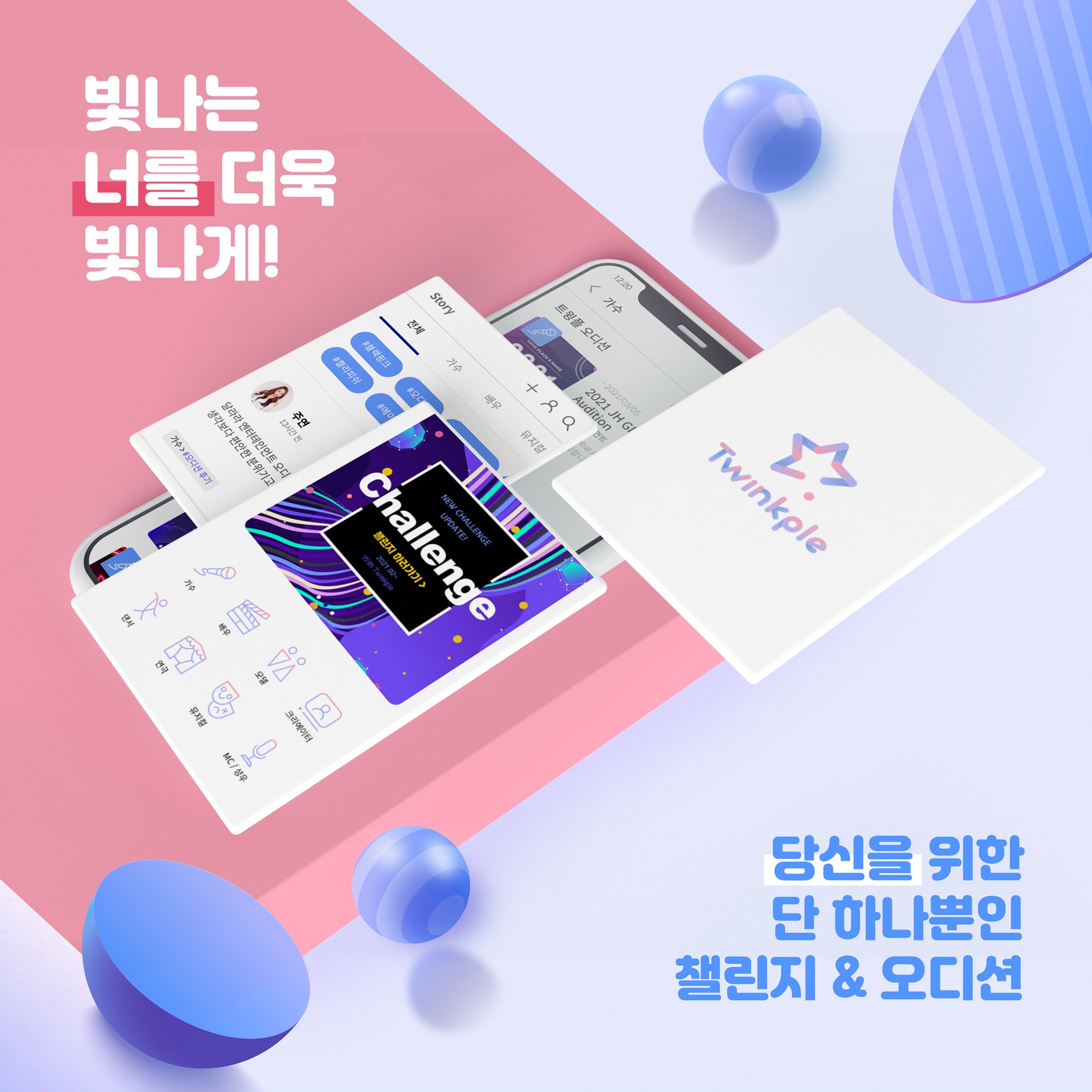 ‘트윙플(Twinkple)’은 다양한 챌린지에 도전하고 오디션에 지원하며 본인의 꿈을 향해 성장할 수 있는 플랫폼으로, 간단한 프로필 작성으로 무한 오디션에 지원할 수 있으며 재미있는 챌린지 참여를 통해 꿈을 실현할 수 있는 기회를 제공한다. 또한 비즈니스 유저들은 다양한 챌린지, 오디션을 게재해 가능성 있는 다양한 지원자를 확인할 수 있고, 원하는 조건에 맞는 지원자들을 검색해 직접 캐스팅을 진행할 수 있다.