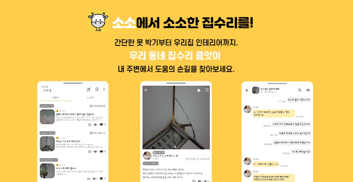 이에 레몬케이크는 집 수리를 할 수 있는 개인이나 전문 수리 업체와 도움이 필요한 사람을 채팅 방식으로 만나 집 수리를 할 수 있게 하는 서비스를 제공하기 위해 ‘소소’를 기획하게 됐다고 전했다.