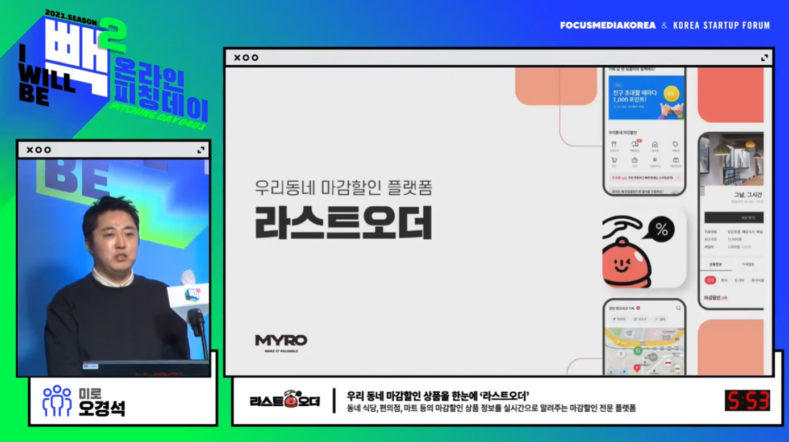 미로(라스트오더) 오경석 대표는 연간 버려지는 음식의 규모가 13조 원에 달하고 이는 고스란히 매장 손실과 환경 오염으로 이어지고 있다며, 이를 줄이기 위한 마감할인 상품정보를 소비자들에게 실시간으로 전달하는 서비스인 라스트오더를 소개했다. 가게에서는 팔리지 않으면 버려질 상품을 판매할 수 있고, 소비자는 30% 이상 할인된 가격에 원하는 상품을 구입할 수 있다는 설명이다. 동네 식당 뿐만 아니라 마트, 슈퍼, 편의점 등의 마감 할인 정보를 제공하고, 픽업은 물론, 배달, 택배배송 서비스를 제공해 소비자 편의성을 높였다고 밝혔다.