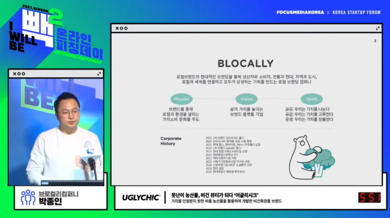 브로컬리컴퍼니(어글리시크) 박종인 이사는 로컬의 농산물을 라이프스타일 상품으로 개발하여 스토리로 판매하는 로컬 브랜딩 기업으로 회사를 소개하고, 제주 귤 농가에서 버려지고 있는 못난이 풋귤을 이용한 안전한 러브젤 상품의 성공을 사례로 밝혔다. 이외에도 홍성 복숭아, 상주 오미자, 무주 사과 등 지역 별로 못난이 로컬 푸드를 발굴해 나갈 계획이라고 전했다.