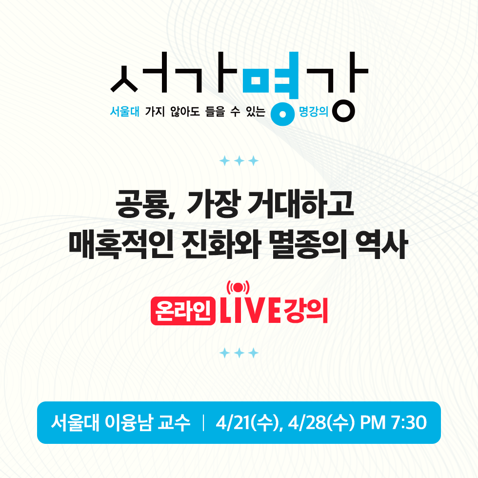 ◆ 4월 21일 (수) 서가명강 공룡, 가장 거대하고 매혹적인 진화와 멸종의 역사-서울대 이융남 교수