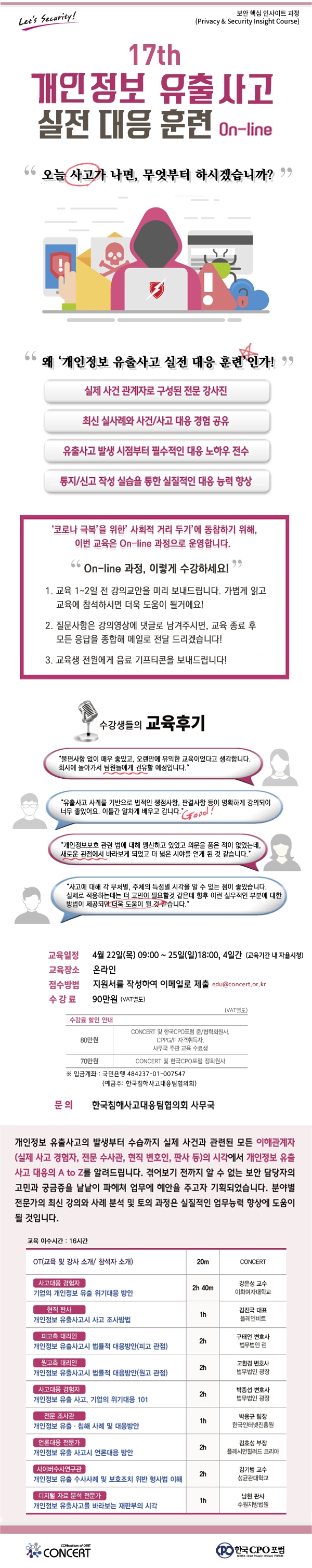 ◇ [4월 22일 목요일] = (온라인) 개인정보 유출사고 실전대응훈련 17기