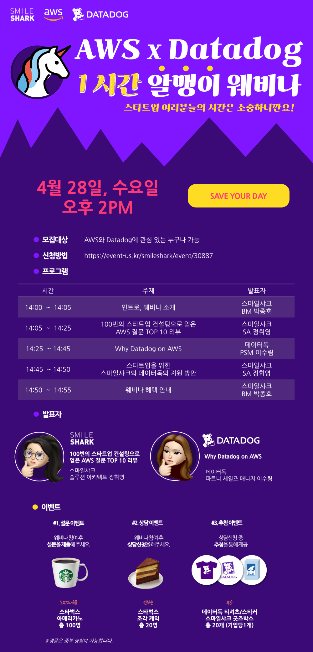 [4월 28일 수요일] = AWS x Datadog, 1시간 알맹이 웨비나