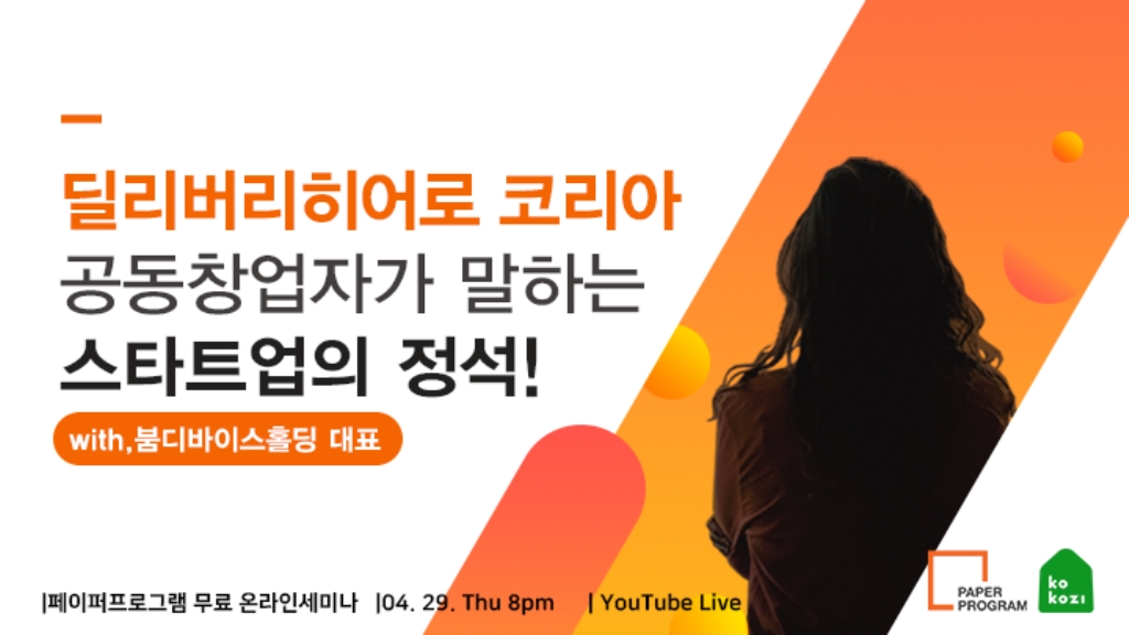 [4월 29일 목요일] = 딜리버리히어로 코리아 공동창업자가 말하는 스타트업의 정석 (페이퍼프로그램 무료 온라인 세미나)