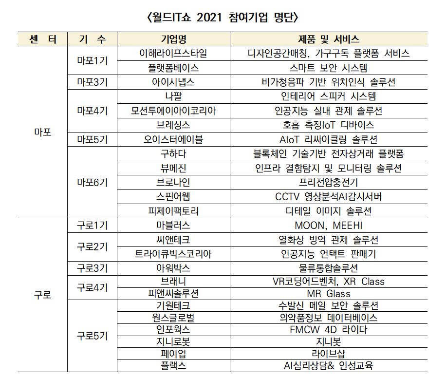특히 브레싱스(마포4기), 지니로봇(구로5기), 스핀어웹(마포6기)은 신제품·신기술 발표회 프로그램에 초청받아 혁신적인 제품 및 서비스를 소개 할 예정이다.
