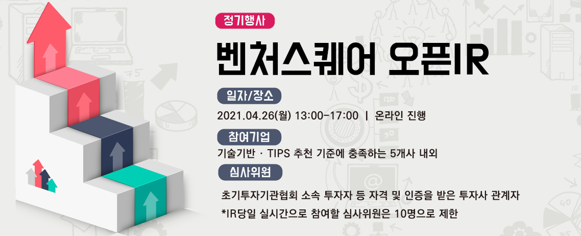 벤처스퀘어 오픈IR 행사는 상시적이고 주기적인 온라인 행사로, 벤처스퀘어의 투자 파트너인 KOC파트너스, BDC랩 등이 추천한 기업들의 TIPS 추천용 투자 심사를 겸해 진행됐다.