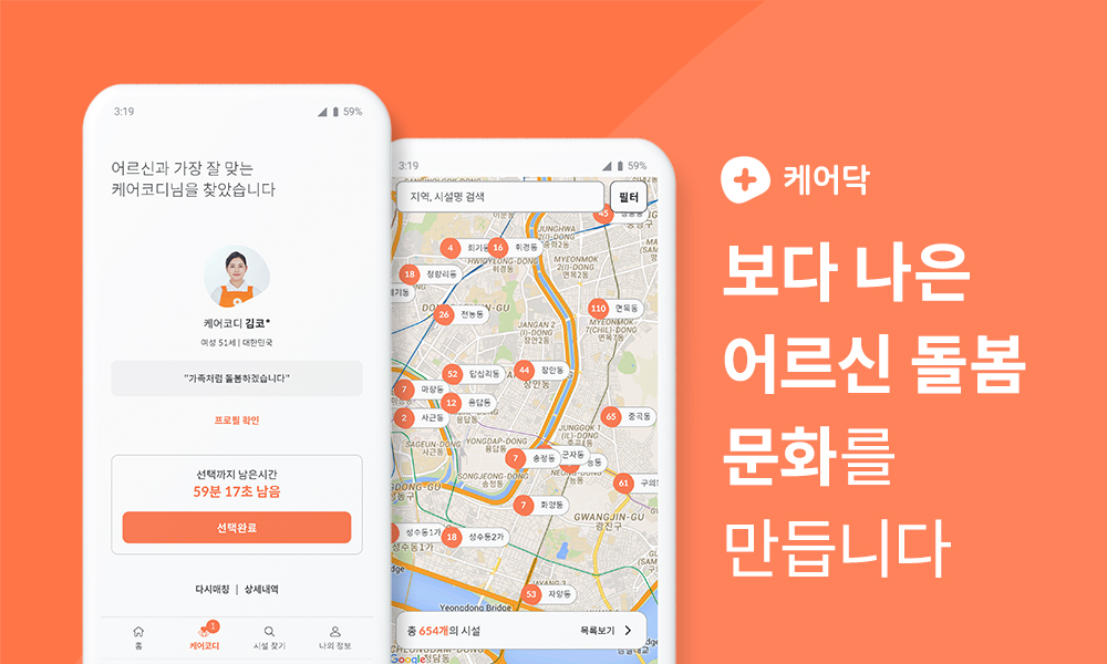 ‘케어닥’ 역시 국가기관 평가와 실사용자 후기 등 검증된 정보를 기반으로 전국 4만 개 이상의 요양 시설 및 약 6천 명의 노인 돌봄 서비스 전문가를 중개하는 사용자 맞춤형 플랫폼을 제시, 소비자 지향 산업을 전방위에서 펼치고 있다.