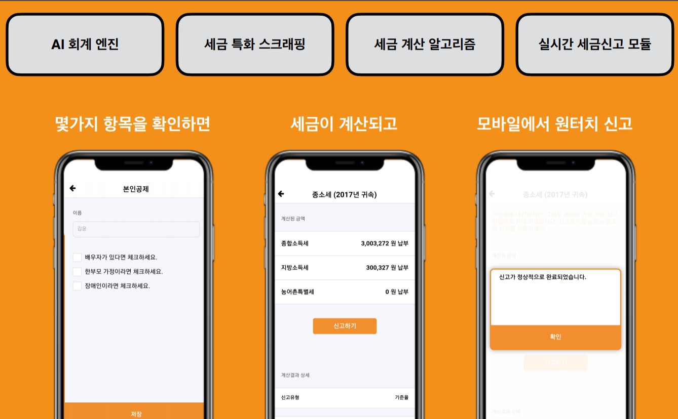 - 실시간 세금 신고 모듈: 계산된 정보들을 가지고 국세청에 실시간으로 신고하는 모듈을 보유하고 있다.