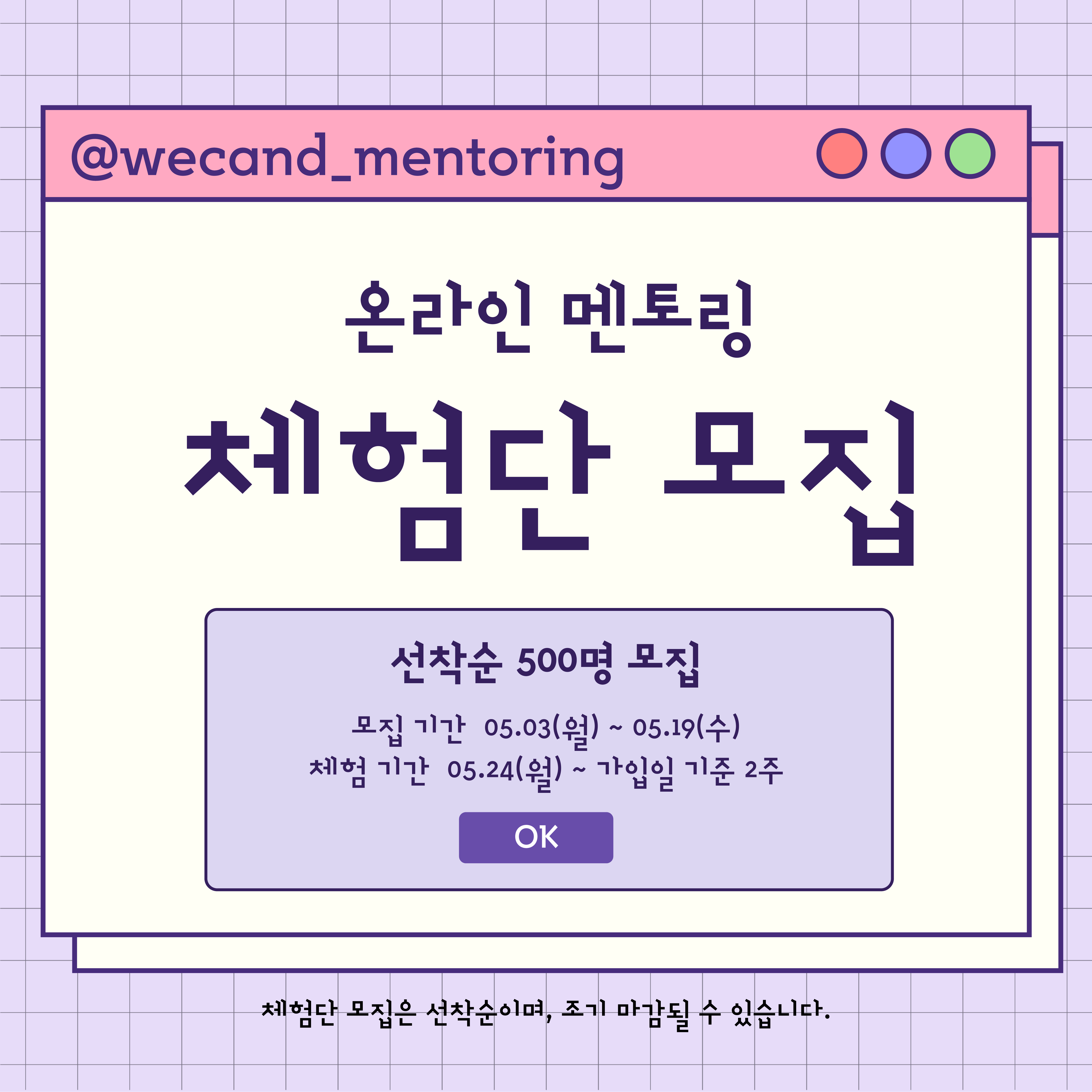 더 자세한 정보와 신청방법은 위캔드 인스타그램(@wecand_mentoring)에서 확인할 수 있다.