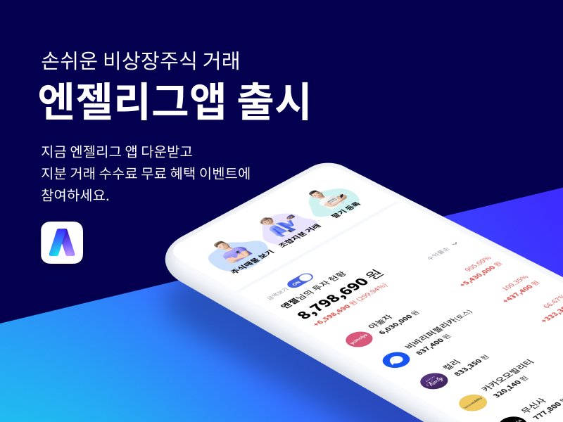 엔젤리그는 스톡옵션을 행사한 스타트업 임직원, 또는 비상장 주식 보유자가 편리하게 이익 실현을 하고, 누구나 쉽고 안전하게 유니콘 스타트업에 투자할 수 있도록 하는 비상장 주식 거래 서비스다. 사측에 따르면 현재까지 웹 기반 서비스만 제공했음에도 불구하고, 올해 IPO 기대주로 꼽히는 크래프톤, 컬리, 카카오뱅크 등 비상장 주식에 투자할 수 있어 새로운 투자 방식을 찾는 이들 사이에서 선풍적 인기를 끌며 ‘쉽고 안전한 비상장 주식 거래’라는 패러다임을 제시했다.
