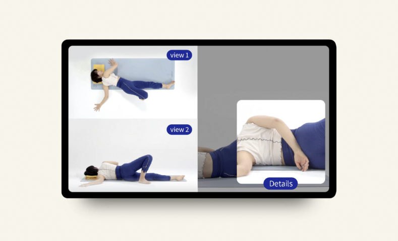 웰리루틴의 비대면 요가 영상은 일반적인 인터넷 강의의 화면과는 매우 다르다. 정면 한 화면으로 요가 선생님이 자세를 직접 보여주는 일반적인 강의와 100% 달랐다. 우선 요가 선생님은 직접 자세를 잡지 않았다.