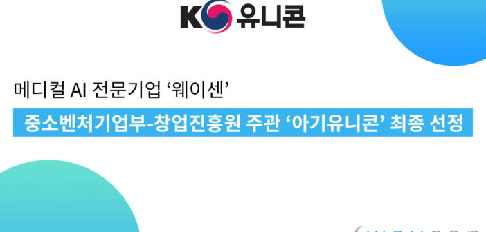 메디컬 AI 전문기업 웨이센(대표 김경남)이 26일 중소벤처기업부와 창업진흥원 주관 ‘아기유니콘’ 기업에 최종 선정되었다고 밝혔다. 웨이센이 선정된 ‘아기유니콘200 육성사업’은 벤처 4대강국 실현을 위해 정부가 추진하는 ‘K-유니콘 프로젝트’의 첫 단계 사업으로 혁신적 사업모델과 성장성을 검증받은 유망 창업 기업을 발굴해 글로벌 경쟁력을 갖춘 예비유니콘기업(기업가치 1,000억)으로 육성하는 것을 목표로 하는 사업이다. 최종 선정된 기업은 신시장 개척과 발굴 등을 위한 시장개척자금 최대 3억원 포함해 기술보증 최대 50억 우대지원, 최대 100억의 정책자금을 지원받을 수 있다. 웨이센은 이번 육성사업에서 인공지능 기반 정밀의료 기술에 대한 경쟁력을 높이 평가받았다. 각 분야 최고 전문가들 및 평가단, 그리고 국민심사단이 웨이센의 보유기술이 의료 시장에서 충분한 경쟁우위를 갖고 선점 가능하다고 평가하여, 글로벌 시장 내 성장 가능성을 인정해 아기 유니콘으로 최종 선정한 것이다. 웨이센은 지난해 3월 과학기술정통부 주관 SW 고성장 기업에 선정에 이어, 중소벤처기업부 주관 TIPS 창업팀으로 연이어 선정된 바 있다. 국내 유수의 대학병원들과 보건복지부, 질병관리본부 등에서 주관하는 다양한 과제들을 수주 받아 연구를 진행함에 따라 의료산업 내 메디컬 AI 전문기업으로의 입지를 탄탄하게 다져오고 있다. 이처럼 각 정부 부처에서의 기술력 인증 및 대학병원들과의 훌륭한 파트너쉽을 바탕으로 메디컬 AI 전문기업으로써 높은 성장 가능성을 인정받아 지난 2월 삼호그린인베스트먼트, 아이디벤처스, 티인베스트먼트, 창조투자자문과 같은 벤처 캐피탈 4곳으로부터 총 30억원의 시리즈A 투자유치에 성공했다. 웨이센 김경남 대표는 “웨이센의 기술력과 기업성장에 대한 가치를 인정받은 것 같아 기쁘다”며 “정밀의료 분야에서 쓰임이 있는 인공지능 기술을 만들기 위해 지속적 연구개발 할 것이며, 인공지능 의료도메인에서 첫 유니콘 기업으로 성장할 수 있도록 노력하겠다”고 말했다. 한편 웨이센은 메디컬 AI 전문기업으로 인공지능 기반의 암주기 정밀의료 플랫폼 ‘웨이메드(WAYMED)’를 개발한 바 있으며, 의료 환경에 최적화된 정밀의료 인공지능 기술을 위한 다양한 연구 및 사업을 추진하고 있다.