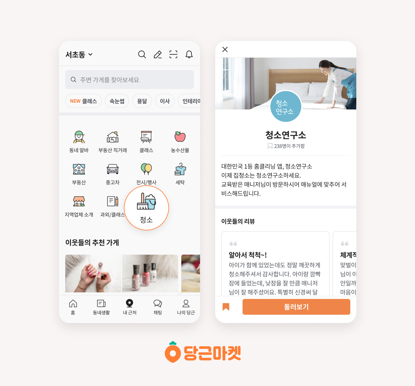 지역생활 커뮤니티 당근마켓(공동대표 김용현, 김재현)은 ‘내 근처’를 통해 홈클리닝 서비스인 청소연구소의 서비스 연결을 제공한다고 1일 밝혔다.