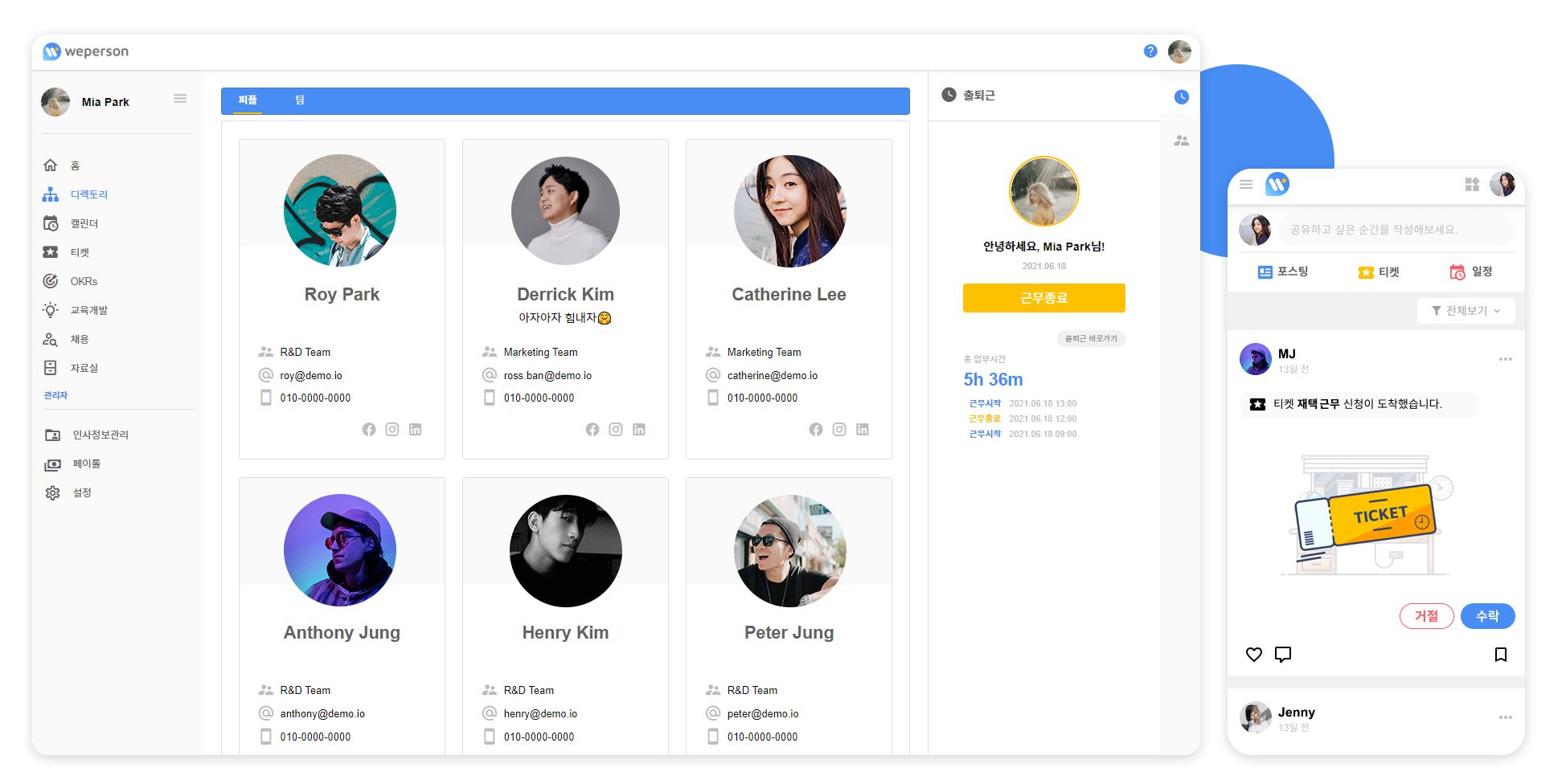 특히, MZ세대에게 친숙한 SNS 형태로 모바일에 최적화되어 있다는 점이 특징이다. 최근 비공개 사용자 테스트에서 직관적인 UI/UX와 편의성에 있어 기존의 딱딱하고 어려운 인사시스템과 큰 차별성을 보인다며 사용자들로부터 호평을 받았다.