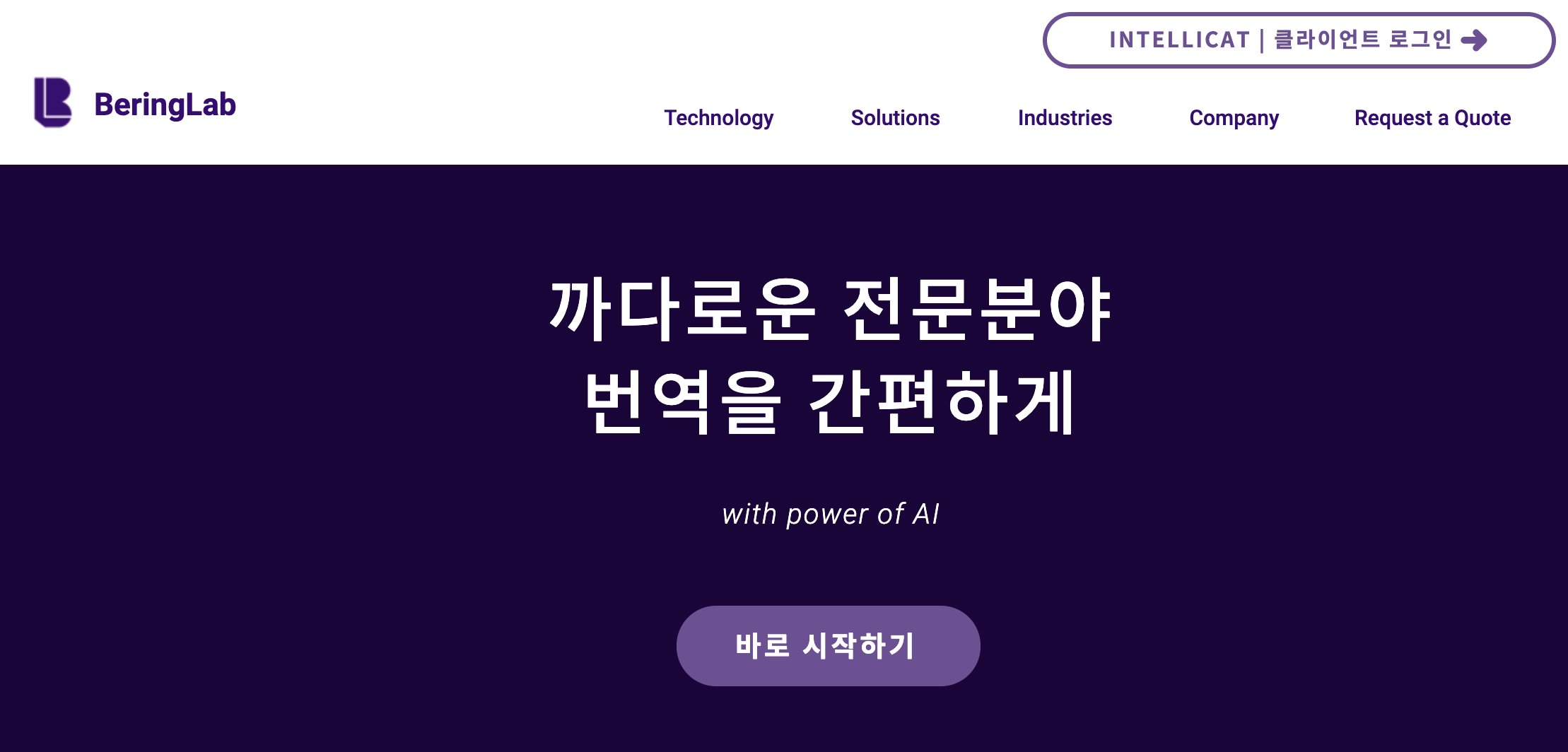 베링랩은 특정 전문 분야의 데이터를 집중 학습해 최적화된 AI번역 엔진을 개발하는 스타트업으로, 해당 분야에서 범용 번역 엔진보다 높은 성능을 자랑한다. 현재 법률, 특허, 기술 분야를 목표로 비즈니스를 진행 중이다.