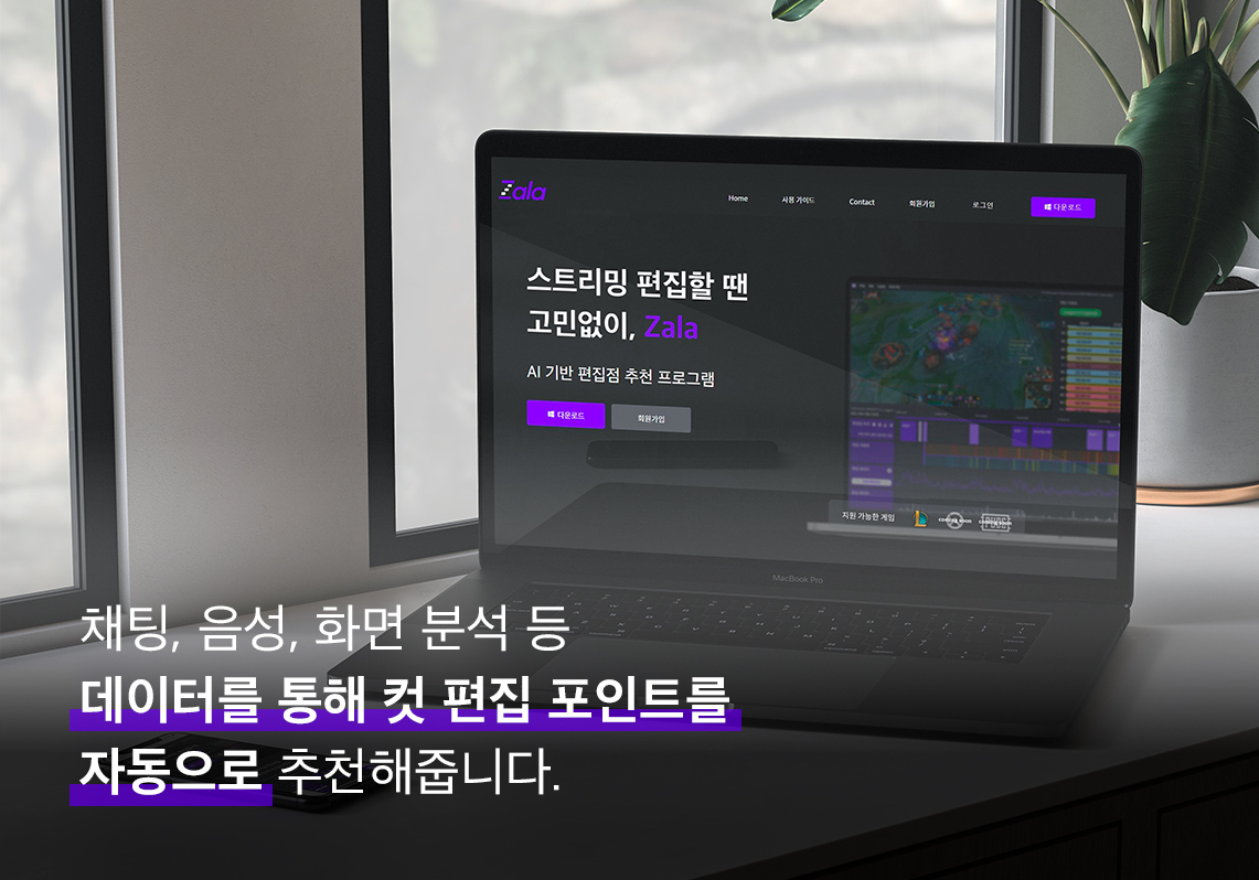 잘라는 스트리밍 영상 편집을 위한 AI 기반 컷 편집점 추천 프로그램으로 7월 오픈 베타 서비스를 론칭했다. 영상 편집자의 작업 능률을 극대화하는 것을 목표로 스트리밍 영상의 핵심 요소인 시청자의 채팅, 영상 소리, 화면(게임 주요 장면) 데이터를 분석해 적합한 컷 편집점을 추천해주는 ‘AI 추천 편집점 기능’을 제공한다. 분당 채팅 빈도, 음성, 도네이션 등의 데이터를 기반으로 시청자와 스트리머의 반응이 증가하는 부분을 찾아내 컷 편집에 적합한 장면을 추천하는 것이 특징이다. 잘라의 편집점 추천 알고리즘은 실제 편집자가 편집한 유튜브와 비교했을 때, 95% 이상 일치할 정도로 정교한 편집점을 추천한다.