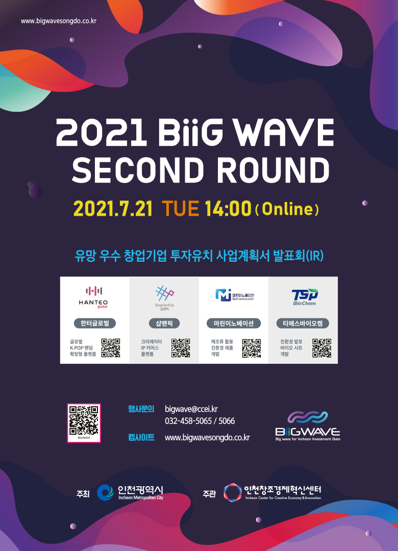 인천창조경제혁신센터가 ‘2021년도 제2회 빅웨이브 IR(투자 유치 사업 계획 발표회)’를 개최한다.