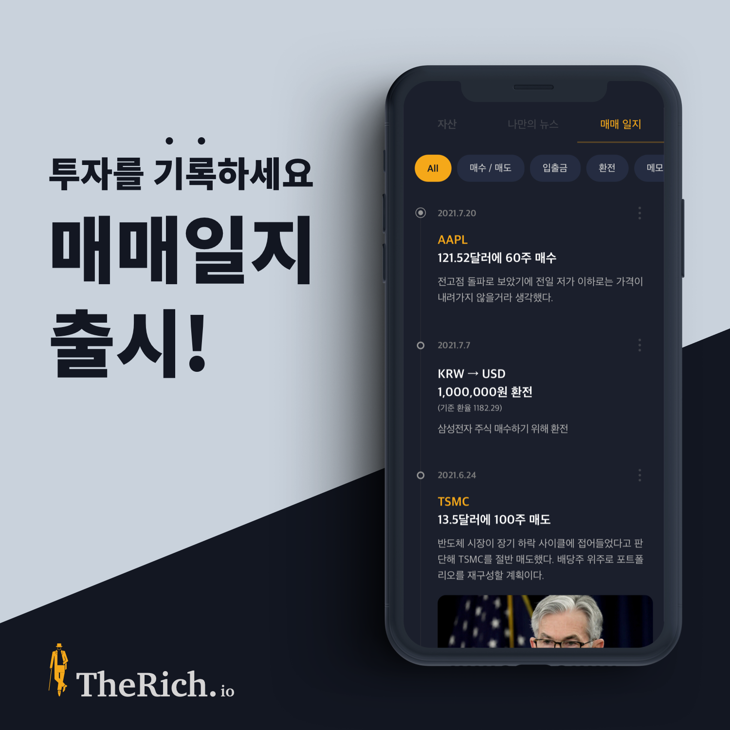 증권사 연동 기반의 자산 포트폴리오 서비스 더리치가 ‘매매일지’ 기능을 출시했다.