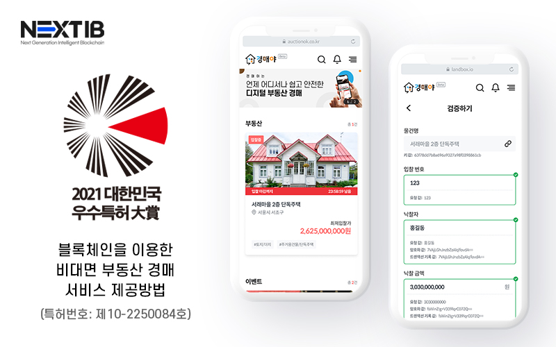 넥스트아이비는 지난 5월 블록체인을 이용한 비대면 부동산 경매 서비스 제공방법을 특허 등록했다. 온라인 부동산 경매로는 첫 특허 등록이다.