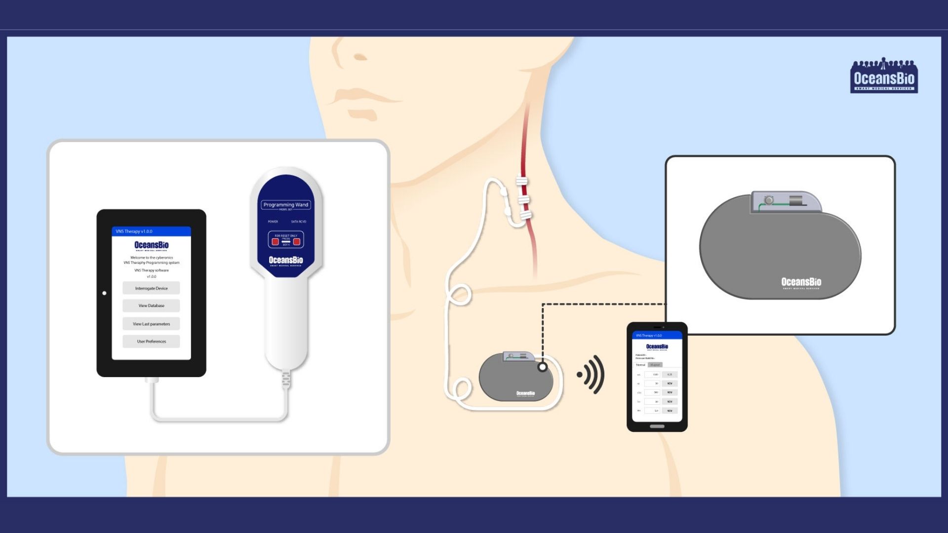 오션스바이오는 인체삽입형 뇌전증 전자약을 개발했다. 현재 시장에서 대부분의 전자약은 1회 사용 후 폐기해야하는 1차 전지로 이뤄져 있어 배터리 방전시 재수술을 통해 교체해야한다. 오션스바이오가 개발한 전자약은 충전하여 재사용이 가능한 2차 전지로 구동이 가능해, 최소 10년이상 인체 내에서 안전하게 사용할 수 있다. 특히 AI기술을 활용해 전자약 전용 무선충전모듈을 설계한 것은 오션스바이오가 세계 최초로, 광주과학기술원의 AI를 이용한 무선충전 코어 형상설계 기술을 활용하여 충전 효율을 극대화함으로써 사용기한을 늘린 것이 핵심이다. 관련 기술에 대한 논문은 미국 SCIE 저널에 2편 게재되었으며 해당 특허 또한 보유하고 있다.