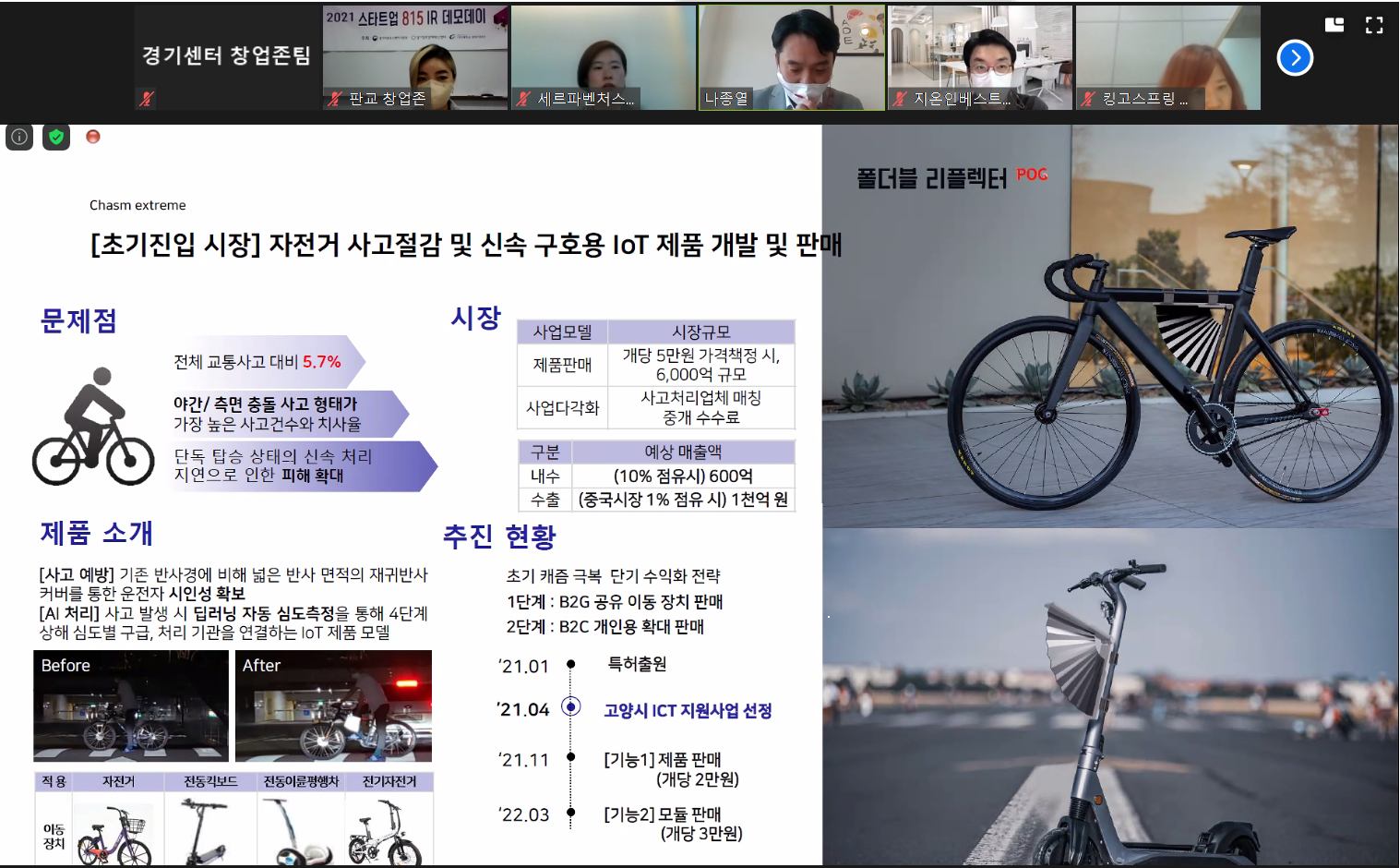 이번 행사는 코로나19 확산으로 인한 정부 방역지침강화에 따라 온라인으로 진행했다. 총 8개 기업과 10개 투자사가 참여했다.