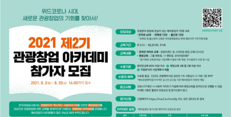 문화체육관광부(장관 황희, 이하 문체부)와 한국관광공사(사장 안영배)는 관광 분야 예비 창업자를 위해 지난해에 이어 ‘제2기 관광창업 아카데미’를 개설하고 8월 2일부터 20일까지 참가자를 모집한다. 이 과정은 관광창업을 장려·지원하고 창업자의 경쟁력 강화를 목적으로 …