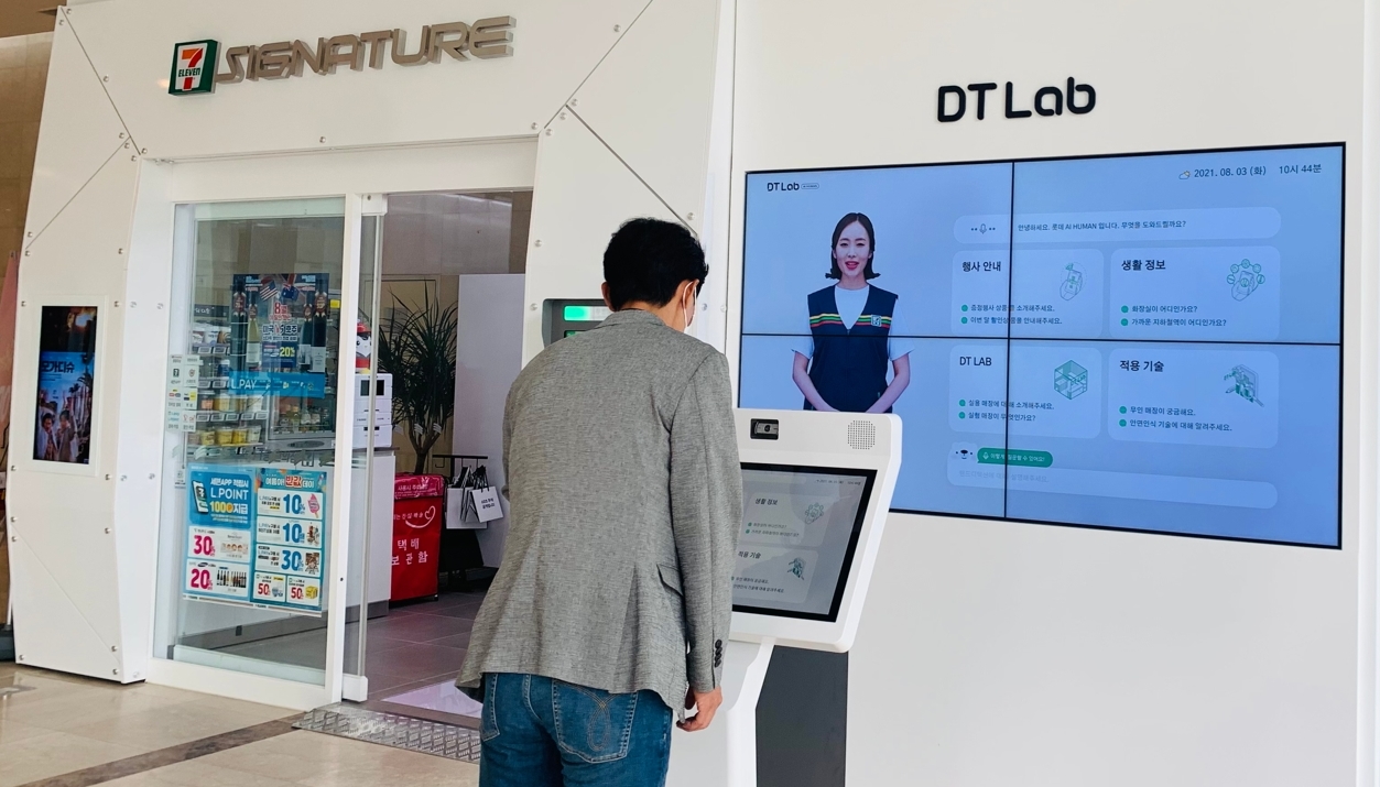 이번에 오픈한 무인 자동화 편의점에 도입된 AI 휴먼은 출입구에 위치한 대형 터치 스크린을 통해 만나볼 수 있다. 일반적으로 고객들이 편의점을 이용할 경우 점주나 직원에게 문의하여 제공받는 다양한 편의점 이용 정보를 확인할 수 있도록 무인 점포 내 AI 직원 역할을 수행하게 된다.