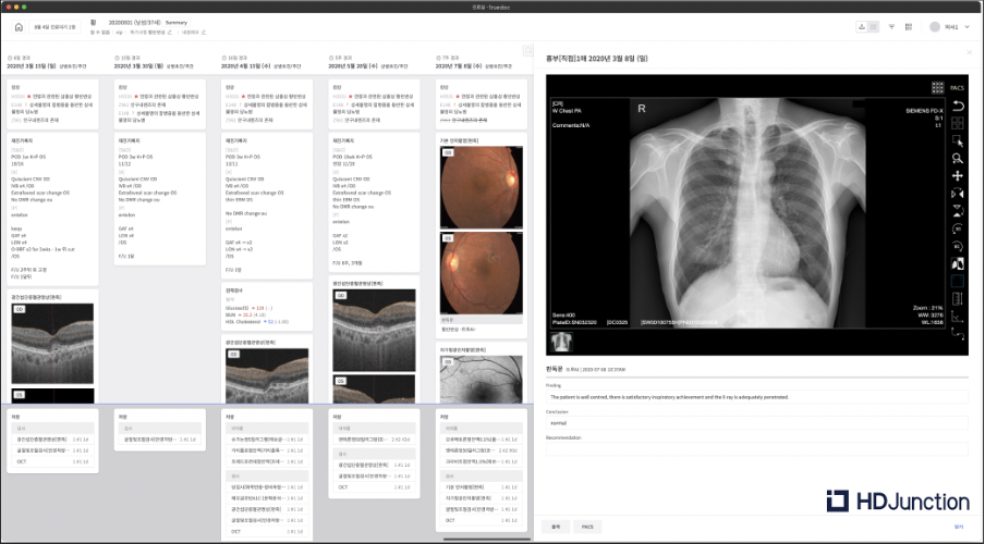 에이치디정션은 헬스케어AI, 유전자 분석, 개인 건강 기록 등 다양한 솔루션과 유연하게 연동되는 EMR 플랫폼 ‘트루닥’을 자체 개발했다. 처방・청구 중심의 기존 EMR에서 벗어나, 의학적 판단에 유용한 병원 안팎의 데이터를 진료 화면 내에서 활용함으로써 보다 질 높은 의료 서비스를 가능케 한다.