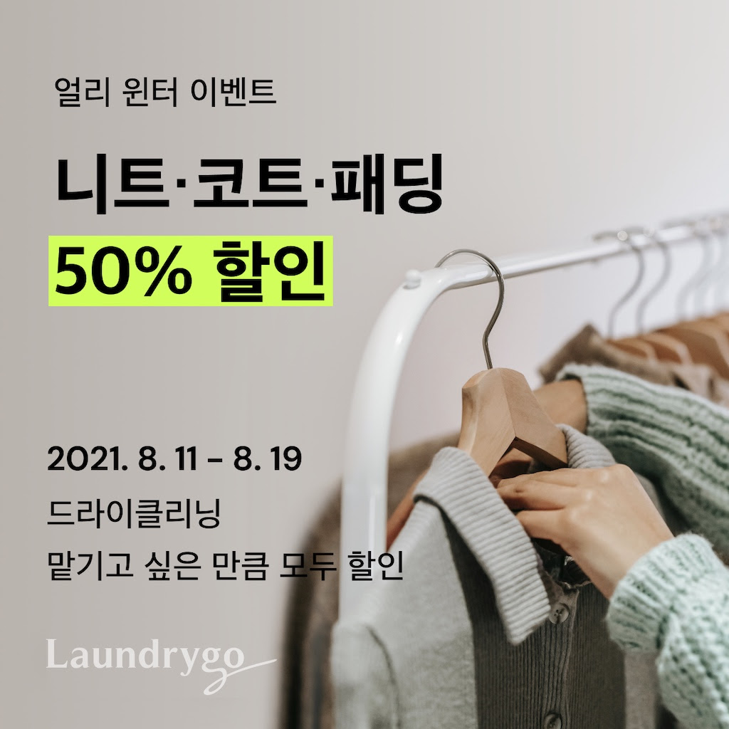 런드리고는 드라이클리닝 300만장 돌파를 기념하는 고객 감사 이벤트로 가을•겨울을 대비한 드라이클리닝 50% 할인 프로모션을 오는 19일까지 실시한다. 해당 품목은 니트·스웨터, 코트, 패딩류로 수량 관계 없이 무제한으로 할인 받을 수 있는 것이 특징이다.