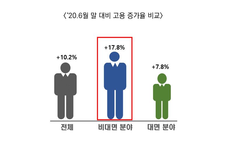 이는 ‘20년 6월 말보다 약 6만 7,238명의 고용이 늘어난 것으로 고용 증가율은 약 10.2% 수준에 달했다.