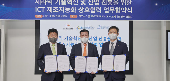 다쏘시스템(www.3ds.com/ko)은 한국세라믹기술원 (KICET - Korea Institute of Ceramic Engineering & Technology) 및 경남창원스마트그린산단사업단과 국내 세라믹 산업 발전을 위한 3자 업무협약을 맺었다고 밝혔다. 지난 9월 9일 창원 3D익스피리언스 이노베이션 센터에서 체결된 이번 협약식에는 다쏘시스템코리아 조영빈 대표, 한국세라믹기술원 정연길 원장, 경남창원스마트그린산단 박민원 단장 등이 참석했다. 한국세라믹기술원은 산업통상자원부 산하 공공기관으로 대한민국 유일의 세라믹 전문연구기관이다. 이번 협약은 경남 및 창원국가산업단지 산업체 기술지원 생태계 구축, 가상공학플랫폼구축사업을 통한 시뮬레이션 인프라 구축, AI기반의 세라믹 플랫폼인 아이세라믹 제조혁신 플랫폼 사업 체계화가 주요 목적이다. 다쏘시스템을 비롯한 양 기관은 세라믹 소재와 공정의 디지털화 뿐 아니라 신소재 개발을 위한 디지털 트윈 기술의 교류와 협력에 적극 나설 예정이다. 또한 아이세라믹 사업의 성공적 안착을 위해서도 긴밀히 협조해 나갈 계획이다. 아울러 경남 및 창원국가산업단지 내 산업체의 CAE 및 제조지능화 기술지원과 더불어 스마트그린산단 공정혁신시뮬레이션센터 구축사업과 연계하고 신규사업 기획을 위한 협력도 함께 진행한다. 다쏘시스템은 한국세라믹기술원에 가상 환경하에서 제품의 성능, 신뢰성, 안전성을 평가할 수 있는 시뮬리아(SIMULIA)를 비롯해 원자단위 모델링을 통해 소재 특성 예측 및 분석이 가능한 바이오비아(BIOVIA)의 머티리얼 스튜디오(Materials Studio), 3D 캐드 소프트웨어인 솔리드웍스 (SOLIDWORKS)를 지원한다. 특히 솔리드웍스 해석용 모델링에 대한 사용자 교육을 통해 국내 세라믹 업계에 CAE (Computer Aided Engineering) 개념을 적극 보급하고 지원할 계획이다. 다쏘시스템코리아 조영빈 대표이사는 "다쏘시스템은 세라믹 분야의 첨단 신소재 연구 개발과 디지털 공정혁신에 적극 협력하여 세라믹 기술 혁신을 통한 국가사업 발전에 기여할 것이다"라고 밝히고 “한국세라믹기술원의 소재 및 부품의 클라우드 플랫폼인 벡터(Vector)와 다쏘시스템의 3D익스피리언스 플랫폼의 유기적인 연결을 통해 신규 비즈니스를 창출하고 산학연 기술 인력 양성을 위한 온/오프라인 교육 지원 및 양 기관의 플랫폼 홍보도 활성화할 예정이다” 라고 강조했다. 한국세라믹기술원 정연길 원장은 “한국세라믹기술원은 최근 차세대 세라믹 소재 개발을 위해 가상공학 플랫폼에 인공지능 기술을 적용하는 데 적극 주력하고 있다” 고 강조하며 “다쏘시스템의 선진 플랫폼과 소프트웨어 기술 도입으로 공동 협업을 통한 새로운 비즈니스 모델 개발을 모색해 나갈 것이다. 이번 협약은 국내 소재 및 부품 산업계의 새로운 발전 모멘텀이 될 것으로 기대한다” 라고 말했다. 경남창원스마트그린산단 박민원 단장은 “이번 업무 협약은 국내 세라믹 기술혁신을 주도하고 있는 한국세라믹기술원의 ICT제조지능화 연구과제에 크게 도움이 될 것"이라고 설명하며 "경남창원 스마트그린산단사업단의 세라믹 연구과제를 위한 의미 있는 산학연 파트너 관계를 맺게 되어 매우 기쁘다"고 밝혔다.