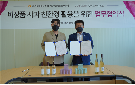 ㈜디캔트가 비(非)상품사과 친환경 활용을 위한 업무협약을 체결했다.