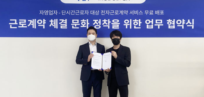 급구를 운영 중인 니더(대표 신현식)는 모두싸인(대표 이영준)과 29일 근로계약 체결 문화 정착을 위해 업무협약을 체결하고 상호 합력하기로 했다. 이번 업무협약으로 모두싸인과 급구는 자영업자와 단시간근로자 대상 전자근로계약 서비스 무료 이용 지원에 대한 상호협력 방안을 마련했다. ㈜니더에서 운영중인 ‘급구’ 서비스는 실시간 아르바이트 매칭 서비스 플랫폼으로, 구인자‧구직자 모두에게 빅데이터 분석을 활용하여 원하는 맞춤 아르바이트 정보를 실시간으로 제공하는 맞춤형 큐레이팅 서비스이다. 모바일 환경에 최적화된 어플리케이션(앱) 서비스로 기존의 구인구직 포털사이트 보다 더욱 쉽고 빠르게 알바정보를 취득하고 채용을 진행할 수 있다는 장점을 가지고 있다. 무엇보다 올해 서비스 사용자의 의견들을 반영한 대규모의 업데이트를 통해 채용 시작부터 과정까지 그리고 근태관리, 송금 등의 편의 기능도 비대면 채팅으로 모두 가능해졌다. 구인자는 경력사항, 위치 등 원하는 회원의 정보를 미리 확인하고 근무 지원자 혹은 서비스에서 추천해주는 회원에게 먼저 근무를 제안할 수 있으며, 구직자는 지원뿐 아니라 고용주(사업자)로부터 근무제안을 받을 수도 있다. 이러한 서비스를 바탕으로 야놀자, 빔모빌리티, 배민장부, 배민커넥트, 카카오 모빌리티, 쿠팡 로지스틱스 등과 제휴를 통해 서비스를 제공한 바 있으며, 편의점 CU를 운영하는 BGF리테일과 올해 정식 제휴를 통해 당일 구인 서비스인 ‘CU급구’ 서비스를 제공하고 있다. 모두싸인은 비대면으로 법적 효력있는 계약 체결이 가능한 전자계약 서비스로, SaaS 서비스를 통해 시공간의 제약 없이 이메일이나 카카오톡으로 계약을 체결할 수 있다. 문서 업로드부터 계약서 전송, 서명 입력, 계약 체결, 계약서 보관 및 관리까지 계약 업무에 필수적인 기능을 구축이나 설치 없이 즉시 이용할 수 있어, 디지털 전환의 흐름 속 기업의 업무 필수 솔루션으로 주목 받고 있다. 계약 상대방은 회원가입할 필요 없이 바로 계약서를 확인하고 내 사인·도장을 만들어 서명을 입력할 수 있다. 또한 11만 여 기업 및 기관 고객을 보유한 국내 1위 전자계약으로 한국존슨앤드존슨, 카카오, 마켓컬리, 롯데글로벌로지스 등 업계 선두 기업에서 이용하고 있다. 모두싸인 전자근로계약은 고용노동부 전자근로계약서 가이드라인을 준수하고 있으며, 실제 이용 고객 중 '근로계약' 을 이용하기 위해 도입한 고객의 비중이 가장 높았다. 비교적 짧은 근로시간과 단시간 근로자가 자주 바뀌는 점 등 업무 환경 상 근로계약서 작성이 쉽지 않아, 단시간근로계약 미체결은 오랜 시간 문제점으로 지적되어 왔다. 이번 업무 협약으로 자영업자와 단시간근로자는 시간 및 공간에 제약 없이, 만나지 않고도 PC·모바일에서 급구 앱에 연동된 전자근로계약 서비스로 근로계약서를 더욱 쉽게 작성할 수 있게 됐다. 이를 통해 근로계약 체결 문화가 및 근로계약서 미작성 등으로 발생할 수 있는 법적 분쟁을 방지하고, 자영업자와 단시간근로자 양측 모두의 권리를 보호할 수 있을 것으로 기대된다. 관련기사더보기 https://www.venturesquare.net/819847