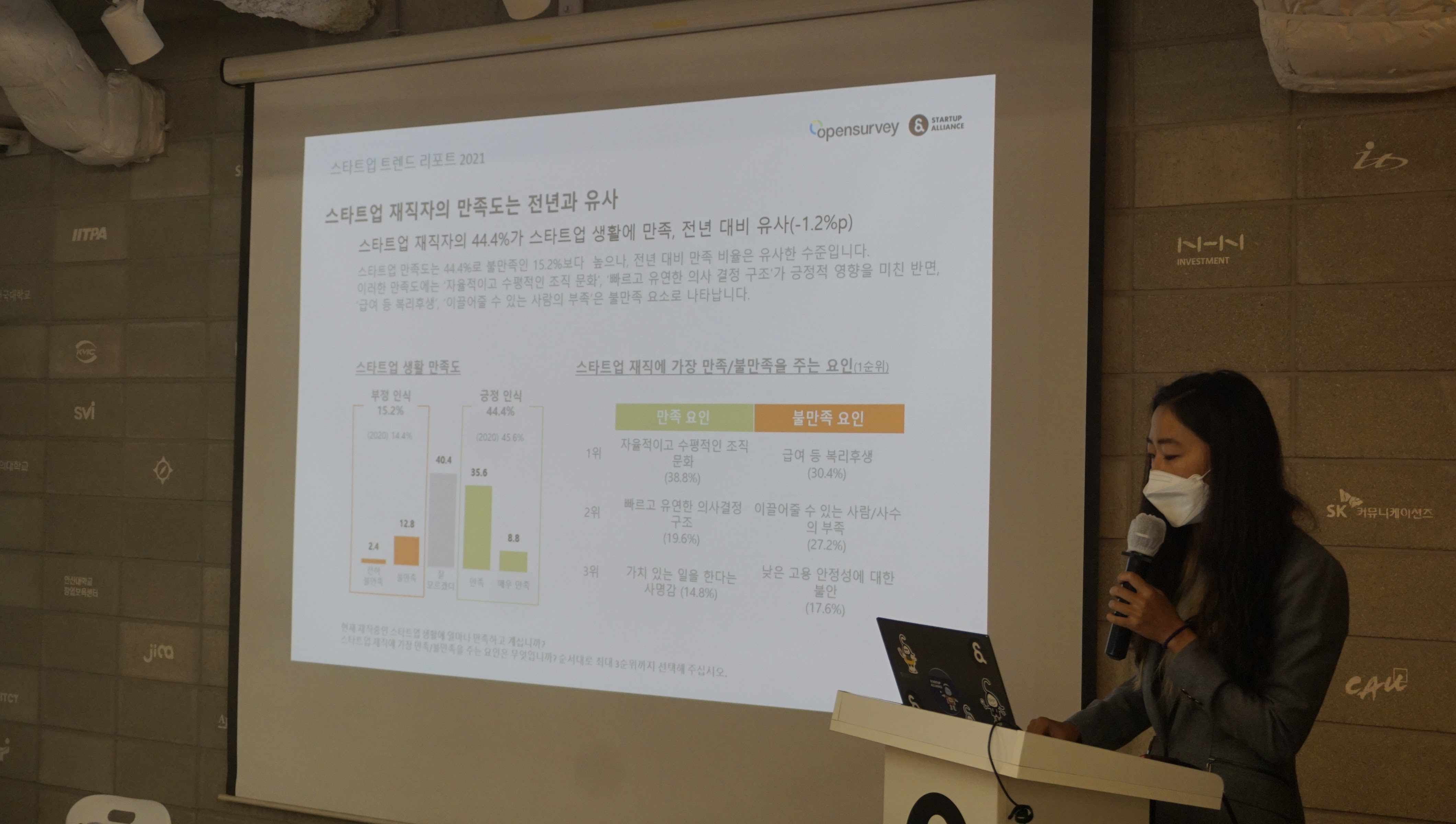 최항집 스타트업얼라이언스 센터장은 “스타트업 인력난과 투자 쏠림 현상 등 해결 과제가 남아있지만 코로나19로 침체되었던 스타트업 생태계가 올해 조금씩 살아나고 있다”며 “특히 정부, 대기업, 투자자, 스타트업 간 생태계 선순환 구조가 자리잡고 있고 토스, 당근마켓 등 스타트업 성공사례가 늘어나 사회적 인식이 긍정적으로 변화한다는 것은 고무적인 현상”이라고 말했다.