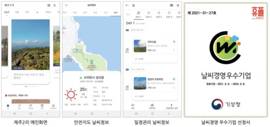 (주)휴플(김홍래 대표)이 기상청이 인증하는 ‘날씨경영 우수기업’에 선정됐다. ‘날씨경영 우수기업’은 기상정보를 경영활동에 다양하게 활용하여 부가가치를 창출하고, 기상재해로부터 안정성을 획득한 기업이 대상이다. 날씨경영 전문 컨설턴트의 현장 심사와 최종 심의를 통해 선정되며, 기상청장으로부터 인증이 부여 돼 3년 간 유지된다. (주)휴플은 자체 개발한 로컬여행플랫폼 ‘제주 2리’ 앱에 다양한 기상 데이터를 활용함을 인정받아 ‘날씨경영 우수기업’에 선정됐다. 복잡한 기상 데이터를 알기 쉽게 변환하여 앱 사용자가 여행 지역의 기상 상태, 자외선 지수, 조석간만 등의 날씨 정보를 파악해 위험을 예방하고 효율적인 여행 일정을 수립할 수 있도록 서비스를 제공하고 있다. (주)휴플은 기상사업자 등록 기업으로 2021년 한국데이터산업진흥원의 데이터 판매·가공부분 공급기업으로 선정 되기도 했다. 또한 지난 5월 한국관광공사의 초기관광벤처기업에 선정된 바 있으며, 정보통신산업진흥원의 2020년 지역SW서비스사업화 지원사업에 선정, 정부와 제주특별자치도의 매칭 예산 지원으로 서비스(제주2리)를 상용화했다. 여행 플랫폼 ‘제주2리’ 앱은 1천여 개의 여행지 정보와 작가들이 집필한 여행 콘텐츠를 기반으로 최근 MZ세대가 추구하는 로컬 여행 트렌드를 반영한 서비스를 제공하고 있다. 관련기사더보기 https://www.venturesquare.net/806636