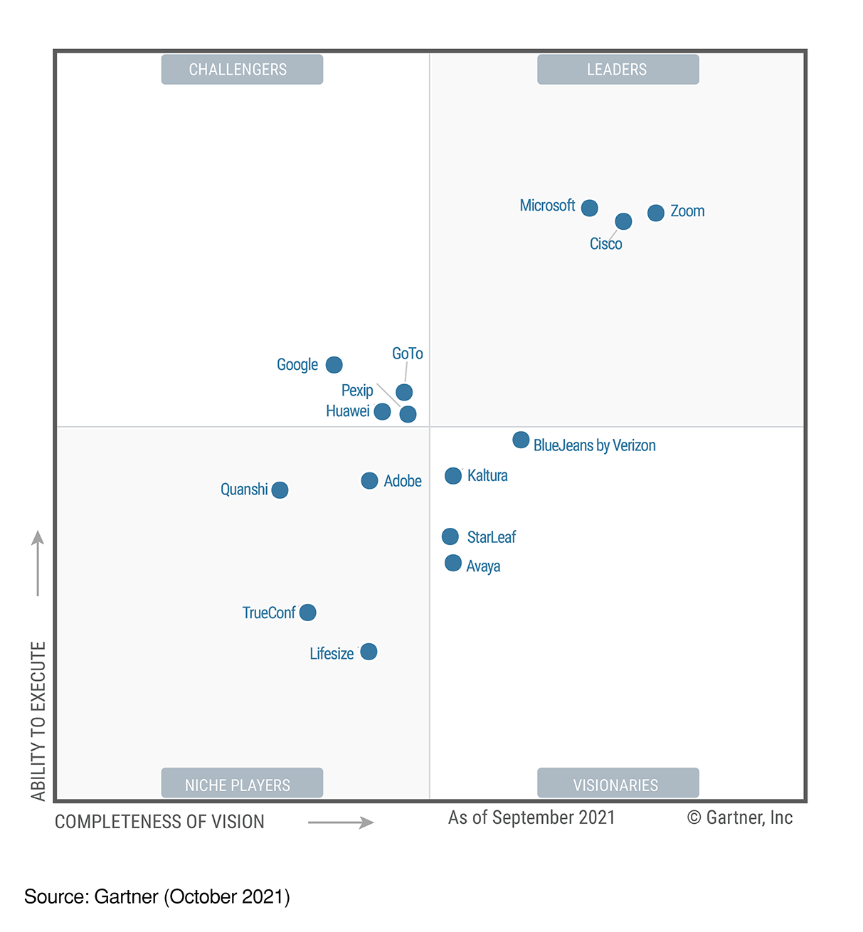 줌(Zoom Video Communications)이 가트너 2021 매직 쿼드런트 미팅 솔루션 부문 리더로 선정됐다.