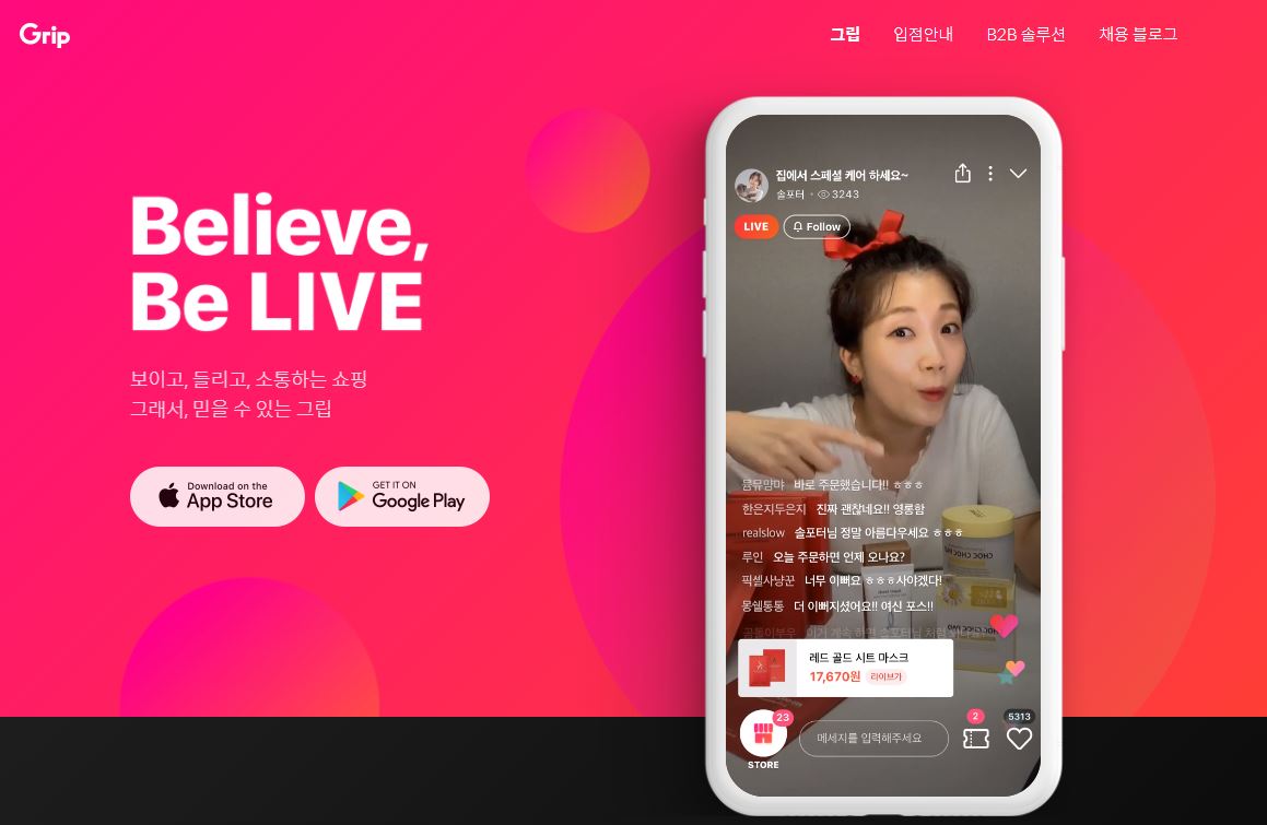 라이브커머스 플랫폼 ‘그립(Grip)‘은 소비자 뿐만 아니라 판로 확보가 어려운 지역 상인들까지 도와주는 서비스도 주목된다. 다양한 기업들이 그립과 협업을 선보여 왔으며 특히 여러 지역의 소상공인들과 함께 특산품을 알리는 데 앞장서, 오프라인에 한정돼 있던 시장의 영역을 확대해 나가고 있다.